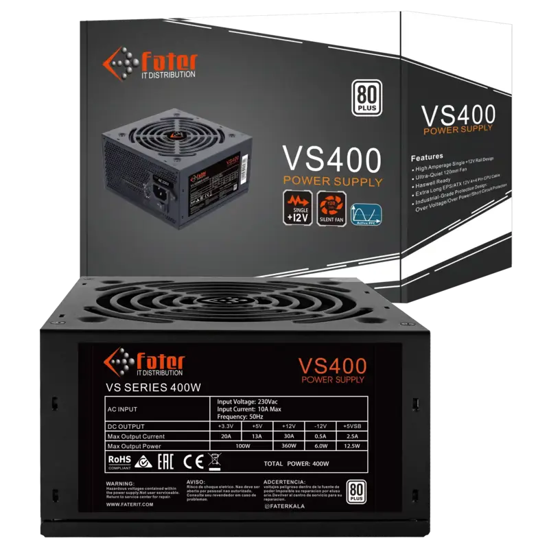 منبع تغذیه Fater VS400 با توان 400 وات و راندمان 80+ White، کارایی اقتصادی و عملکردی پایدار را برای سیستم‌های پایه و سیستم های اداری ارائه می‌دهد.
