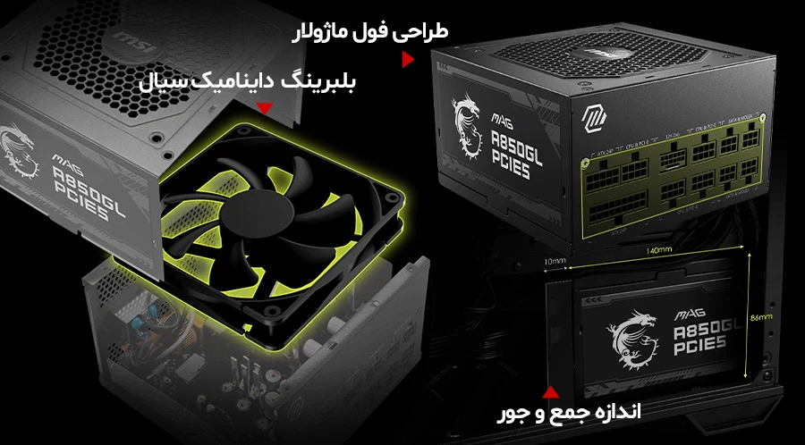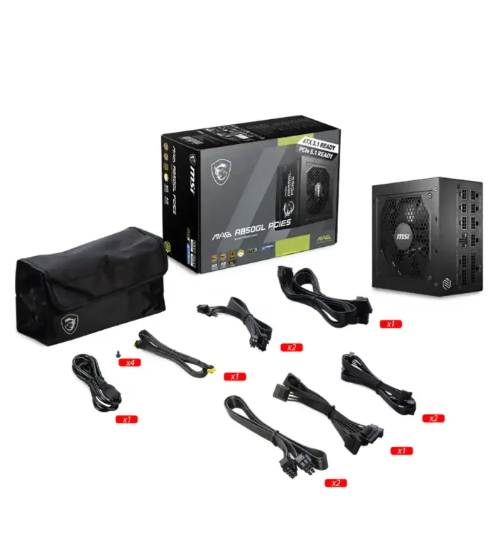 پاور 850 وات MSI MAG A850GL PCIE5 Full Modular با توان خروجی بالا، راندمان عالی، طراحی ماژولار، کابلهای تخت، فن بیصدا، پشتیبانی از جدیدترین استانداردها و مکانیسمهای حفاظتی کامل، یک انتخاب بینظیر برای سیستمهای گیمینگ و حرفهای محسوب میشود. این پاور قدرتمند، تمام نیازهای سیستم شما را به بهترین شکل برآورده ساخته و پایداری و عملکرد بینقص آن را تضمین مینماید.