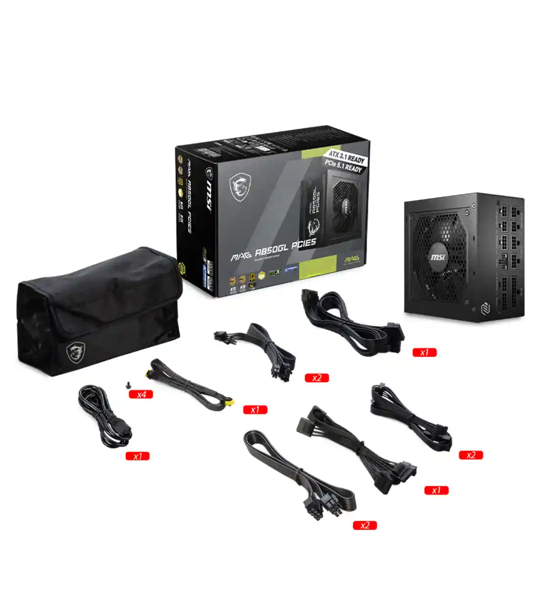 پاور MAG A850GL PCIE5 با پشتیبانی از استاندارد ATX 3.1، خیال شما را از بابت سازگاری با جدیدترین نسل سختافزارها، به خصوص کارتهای گرافیک پرمصرف، راحت میکند. این پاور دارای خروجی سازگار با PCIe 5.1 و Intel PSDG (راهنمای طراحی پاور) ATX 3.1 است و میتواند تا دو برابر توان نامی خود و سه برابر پیک مصرف کارت گرافیک را به صورت لحظهای تحمل کند. با این پاور، دیگر نگران کم آوردن سیستم خود در اوج پردازشهای سنگین نخواهید بود!