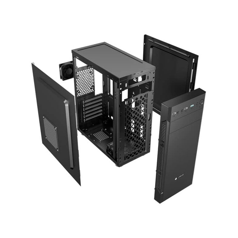 پنل جلویی دارای درگاههای USB 3.0، USB 2.0 و ورودی/خروجی صدا است که دسترسی راحتی به اتصالات پرکاربرد را ممکن میسازد. با توجه به محل نصب پاور در بخش بالایی، این کیس از طراحی کلاسیک بهره میبرد که برای برخی کاربران آشنا و مناسبتر است.