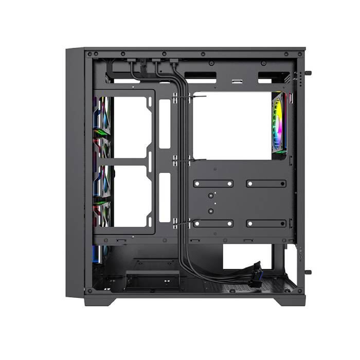 3 عدد فن 120 میلی متری در جلو که شامل می شود ،3 عدد فن 120 در سقف نیز می توان نصب کرد ،در کنار آن می توان رادیاتور هایی مثل : رادیاتور 120 در پشت کیس ،240/280/360 میلی متری در جلو و سقف کیس و 240 میلی متری در