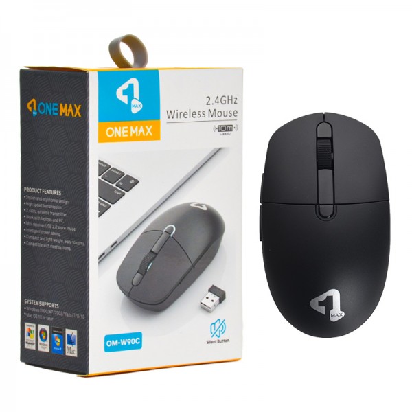 موس بیسیم وان مکس ONE MAX OM-W90C به فناوری ارتباط بیسیم مجهز است که از طریق یک دانگل USB عمل میکند. این ویژگی به کاربران این امکان را میدهد که از فضای خالی روی میز خود لذت ببرند و به راحتی موس را بدون نگرانی از کابلها جابجا کنند. فاصله بیسیم مناسب این موس، موجب میشود که در فواصل دورتر نیز بتوان از آن استفاده کرد.