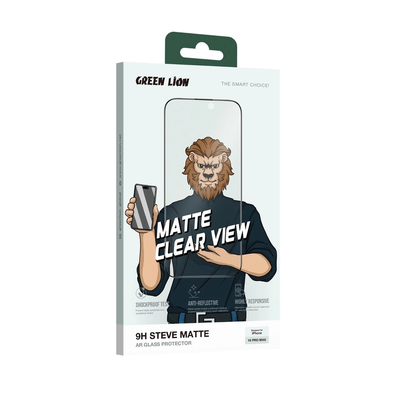 گلس گرین لاین برای iPhone 16 Pro Max مدل Green Lion Steve Matte Clear View Ar Glass Protector
